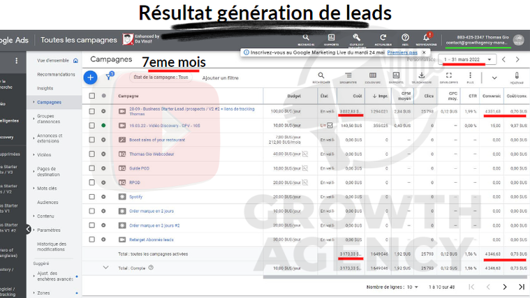 - Création et gestion de vos campagnes dans votre compte Google Ads. Vous gardez le contrôle total.