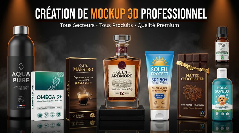 - Lot de 3 Mockups de votre produit original au format .jpg ou .png (création d'un packaging ou d'un visuel professionnel)
