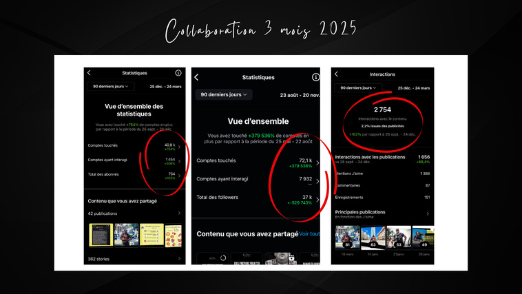 | Création/Repost et publication des stories | 1 tous les 2 jours | 1 par jour | 1 à 2 par jour |