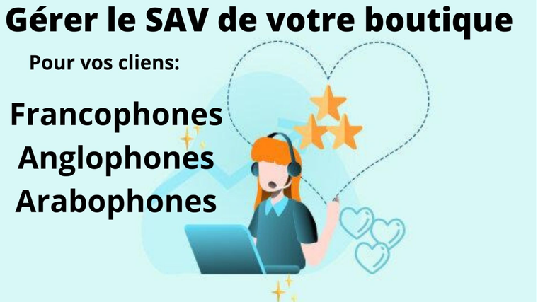 Je vais gérer le SAV de votre boutique E-Commerce pour vos clients Francophones, Arabophones et anglophones