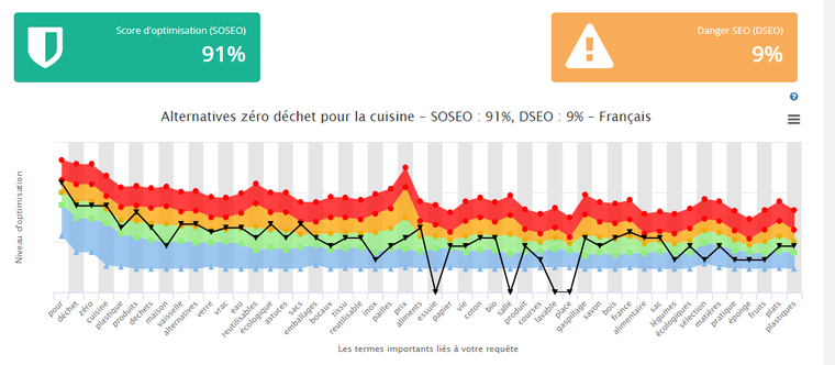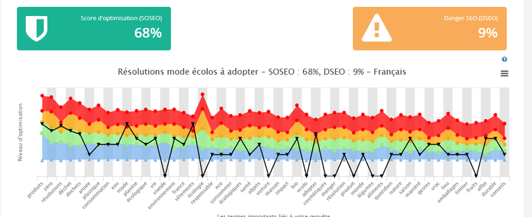 Cet outil analyse la sémantique de votre texte et calcule l'attrait de votre texte pour les moteurs de recherche. Les robots pourront alors identifier les thèmes et les expressions qui sont liés au champ lexical de votre texte. Pour booster votre référencement et monter dans les SERP, il vous suffit de les intégrer jusqu'à atteindre un taux d'optimisation.