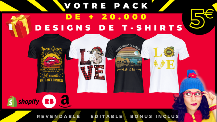 **Démarrez votre activité de vente de t-shirts, hoodies… en ligne **dès aujourd'hui** avec ce méga pack de plus de 20.000 designs !!**