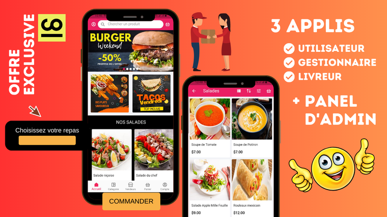 Je vais vous créer une application de restaurant comme Deliveroo ou Uber Eats avec apps et admin panel
