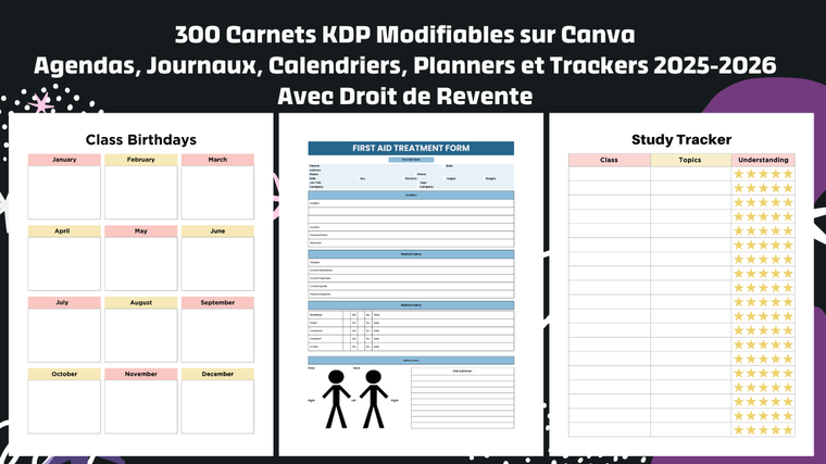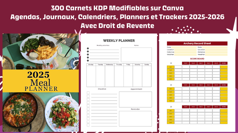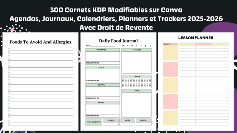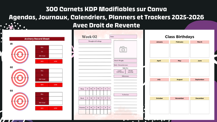 a) Vous recevez également 300 carnets prêts à publier et modifiables sur Canva.
