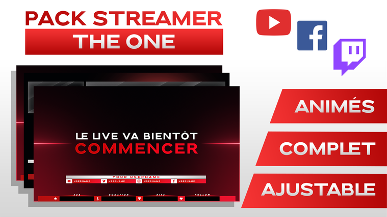 | ✅ 3 Écrans (Animés) : Début de Live + Pause + Fin de Live |
