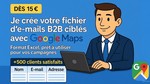 | ✅ Une liste de prospects constituée 1000 adresses e-mails récupérées à l'aide de Google Maps (ou l'ensemble des données disponibles si la quantité est inférieure à 1000), sous le format de votre choix (.csv, .xls, etc.). C'est l'offre idéale si vous souhaitez tester mon service. |