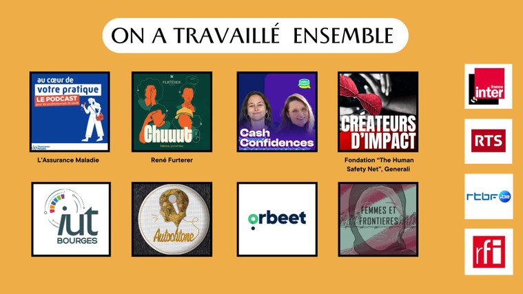 Je collabore désormais réguilèrement auprès de la RTBF et de RFI. Je réalise aussi plusieurs podcasts pour des grandes marques (René Furterer, Generali, Assurance maladie...)