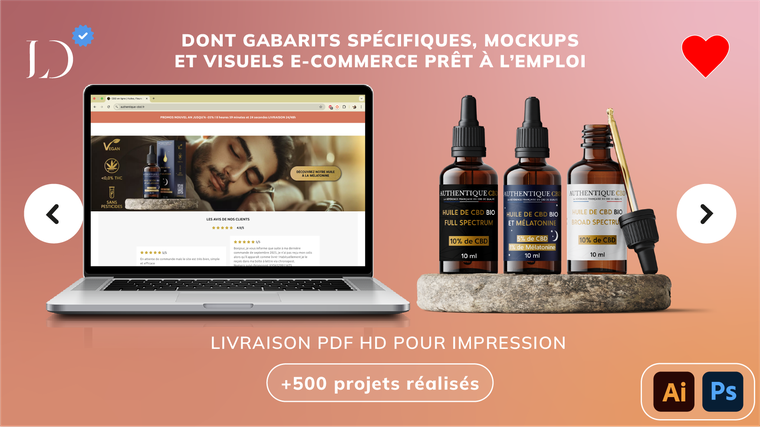 *Le mockup est l'incorporation de l'étiquette sur le produit 3D correspondant - idéal pour vendre votre produit par la suite.