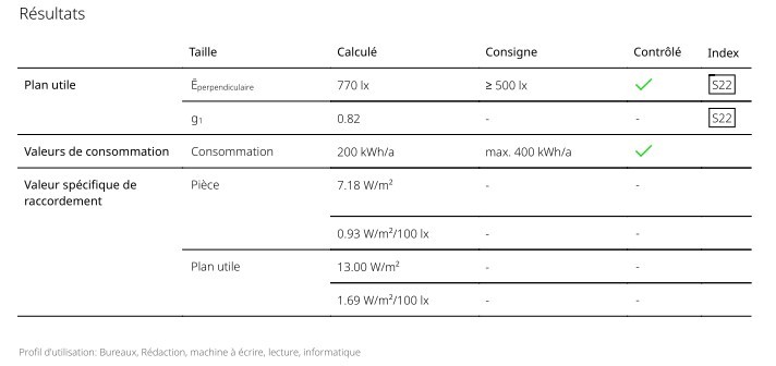 Chaque type de local a une quantité de luminosité stricte à impérativement respecter pour satisfaire aux prescriptions des normes EN 12464 (éclairage des lieux de