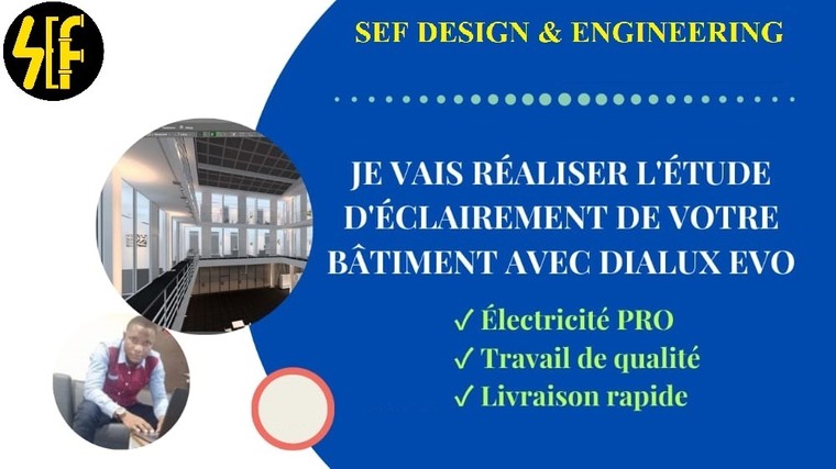 Hello ! 🏆🏆 Bienvenue à SEF-DESIGN & ENGINEERING ! Je suis Harold NOUNAGNON, Ing. Génie Électrique/CEO de "SEF". SEF (STRUCTURE - ELECTRICITY - FLUIDS) est un bureau d’Études Techniques pluri-disciplinaires qui aide depuis plus de 10 années les particuliers, les bureaux d'études techniques et les responsables d'entreprises dans les domaines du Génie Civil - Génie Électrique (CFO/CFA) - FLUIDES (CVCD & PLOMBERIE). Nous sommes spécialisés dans l’Étude, la Conception et la réalisation des projets de fourniture et de développement dans les domaines BTP, Électrique, énergétique et fluides. Les prestations que SEF, fournie sur cette plateforme, sont réparties comme suit : ** STRUCTURE : PLAN 2D - PLAN 3D - CALCUL & PLAN DE STRUCTURE - MODÉLISATION 3D - RÉALISATION ET CHIFFRAGE DQE - ARCHICAD - LUMION - SKETCHUP - TWINMOTION. ** ELECTRICITE : ETUDES EN PHASES APS / APD / PRO / EXE (CFO/CFA)- NOTE DE CALCUL ECLAIREMENT - NC BT/HT - PLANS D’INSTALLATIONS ELECTRIQUES - DOMOTIQUE KNX - DIALUX–AUTOCAD–XLPRO TAB.–XL PRO CALCUL–CANECO BT/HT–REVIT–PVSYST. ** FLUIDES : ÉTUDES EN PHASES APS / APD / PRO / EXE (CVCD & PLOMBERIE) - NOTE DE CALCUL - PLANS D’EXÉCUTIONS. POUR QUOI NOUS ??? Parce que : nous avons plus de 12 années d'expériences ; nous sommes disponibles à plein temps 24H/24 pour vous servir ; nous réalisons un travail 100 % satisfaisant ; nous vous proposons des révisions illimitées sans aucuns frais supplémentaires ; nous assurons une grande précision dans les études et conceptions des plans ; nous livrons rapidement en 24 heures si vous le souhaitez ; N’hésitez pas à nous contacter afin d'obtenir de meilleures conceptions. Merci et à bientôt pour une belle collaboration 🏆🏆!!!