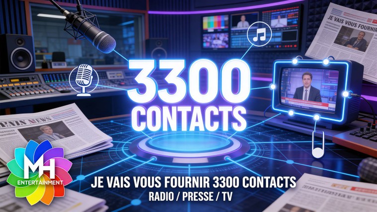 Cette liste exhaustive englobe plus de 3300 contacts soigneusement sélectionnés. Un peu plus de 1000 médias presse radio tv différente.
