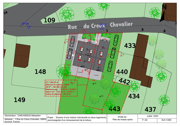 ✧Plan de masse de projet ( échelle 1/200 ou 1/100 et emprise de sol ne dépasse pas 250 m²)
