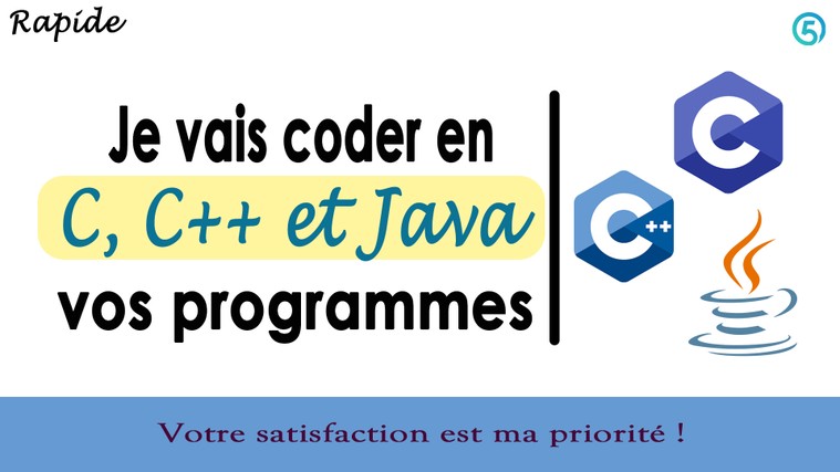 J’ai décidé d’offrir ce service pour coder rapidement et efficacement vos projets informatiques en langage C ou C++ ou Java. Que ça soit pour écrire le programme d'un projet complet d'une application informatique ou les bouts de code manquants d'un programme, ce service est fait pour vous.