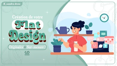 Vous cherchez une illustratrice professionnelle pour la création de vos visuels en Flat design pour vos sites ou boutiques ? **Vous venez de sonner à la bonne porte !