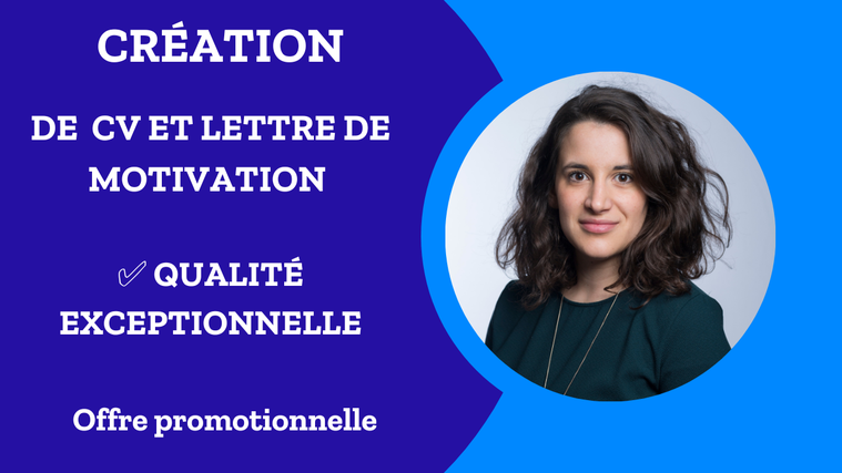 Pour 17,61 $US, je vais créer votre CV et/ou votre lettre de motivation de 02 pages maximum. Vous aurez droit à une conception bien soignée, avec possibilité d'ajouter une photo.