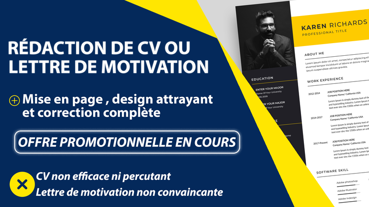Rédaction d’un CV d'une page + lettre de motivation d'une page 17,62 $US