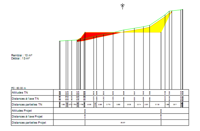 Graphique Afficher la zone de déblai et de remblai et les élévations.