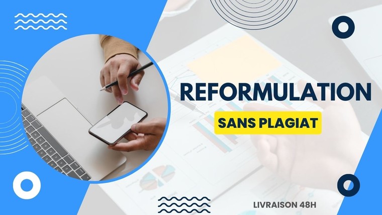 Êtes-vous à la recherche d'un partenaire de confiance pour reformuler votre texte ? Vous avez besoin d'une réécriture professionnelle, originale et livrée dans les temps impartis ? Ne cherchez plus ! Je suis là pour vous aider à surmonter ces obstacles qui peuvent entraver votre parcours professionnel, universitaire ou entrepreneurial.