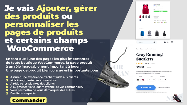 Je vais ajouter, gérer des produits ou personnaliser les pages de produits et certains champs WooCommerce