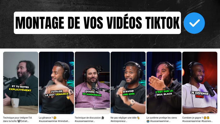 Avec notre service de création de TikToks à partir d'extraits de podcasts, vous pouvez atteindre de nouveaux publics, renforcer votre présence en ligne et générer un engagement accru autour de votre contenu. Commandez dès aujourd'hui et laissez-nous donner vie à vos podcasts sur TikTok de manière créative et captivante.