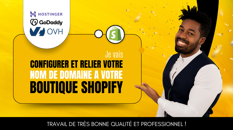 Notre service consiste à configurer et connecter votre nom de domaine personnel à votre boutique en ligne Shopify. Cela vous permettra de créer une présence en ligne professionnelle et de renforcer votre marque en utilisant un nom de domaine personnalisé au lieu d'un sous-domaine générique. Il existe de nombreux fournisseurs de noms de domaine tels que Hostinger, OVH GoDaddy, Namecheap, HostGator, 1&1IONOS, nom-de-domaine.viaduc, Network Solutions, Bluehost, Dreamhost et Google Domains qui offrent des options de registre de nom de domaine abordables. Une fois que vous avez acheté un nom de domaine auprès d'un de ces fournisseurs, nous nous chargerons de configurer les paramètres et de connecter votre nom de domaine à votre boutique Shopify pour que vous puissiez commencer à utiliser votre nouvelle adresse en ligne. Notre service comprend également des options de configuration avancée pour les utilisateurs expérimentés, y compris la configuration de la redirection de domaine, la configuration de la messagerie électronique personnalisée et la configuration de la sécurité SSL pour assurer la sécurité de vos transactions en ligne. En résumé, notre service vous permet de créer une présence professionnelle en ligne en connectant un nom de domaine personnel à votre boutique Shopify. Nous vous offrons également des options de configuration avancées pour une expérience utilisateur optimale.