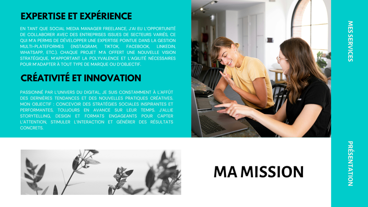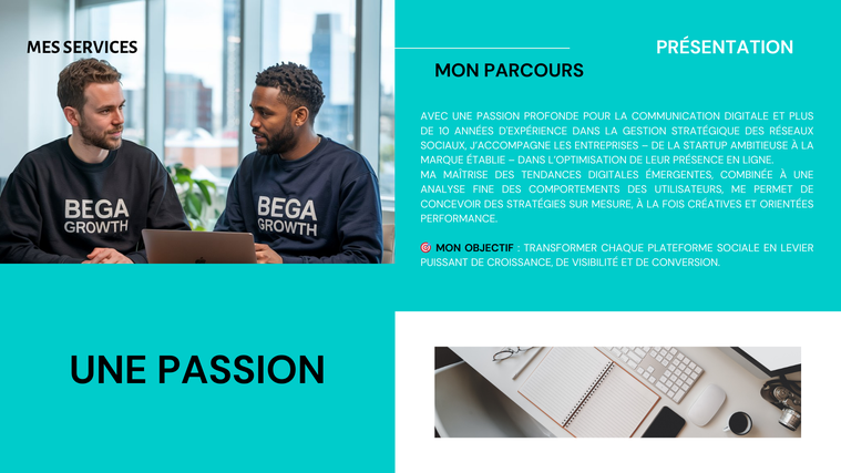 ~Grâce à ma passion pour le web marketing et ma spécialisation en gestion de comptes Instagram, j'ai aidé de nombreuses entreprises à développer une présence solide et à créer des relations durables avec leur audience. Mon approche centrée sur le contenu de qualité, l'interaction et l'analyse des données a prouvé son efficacité.~