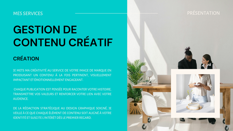 **Création de contenu percutant :** Le community manager Instagram est compétent dans la création de visuels attrayants et engageants. Il sait commenter votre histoire de marque à travers des images et des vidéos captivantes qui attirent l'attention de votre public et suscitent son intérêt.