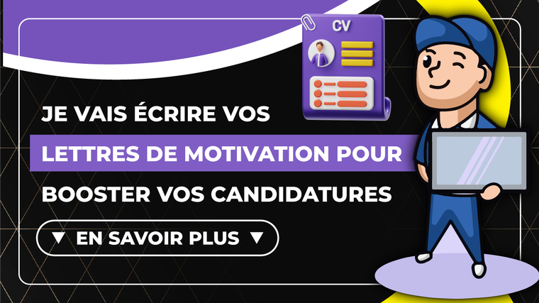 Expérience et compétence : Fort de plusieurs années d'expérience en rédaction professionnelle, je maîtrise les techniques pour créer des lettres de motivation captivantes et convaincantes, adaptées à votre profil et au poste visé.