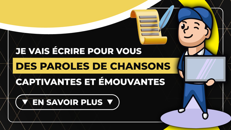 **Un service personnalisé pour vous aider à vous démarquer dans l'industrie musicale** : Mon but est de vous accompagner dans votre succès en proposant des paroles qui sortent du lot, qui captivent l'auditoire et qui vous aident à vous imposer dans le monde de la musique.