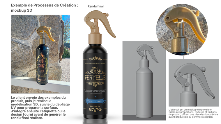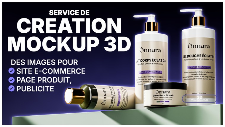 Je propose un service spécialisé dans la création de mockups produits et de visualisation produit 3D pour e-commerce, à partir de photos ou de designs existants fournis par le client. L’objectif est de transformer vos produits en visuels clairs, crédibles et cohérents, adaptés aux pages produit et aux marketplaces.