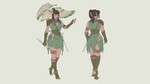 3 proposition de mise en couleur de l'illustration d’un personnage de la tête au pied