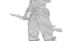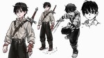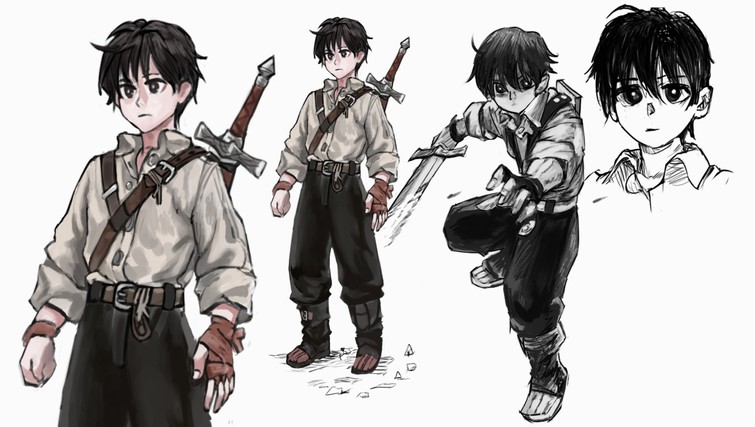 3 Croquis d'illustration d’un personnage de la tête au pied en blanc noir de l'illustration