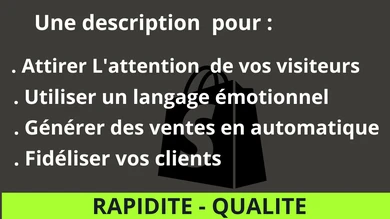 Je peux optimiser et revoir le branding de votre boutique unique qui ne convertir pas ou convertir peu pour différentes niches comme : Niche de Technologie, Niche de Sport, Niche de vêtement, Niche d’animaux, Niche de produits Électroniques, Niche Santé et alimentation, etc... Si possible, j'inclus également des preuves sociales pour renforcer la crédibilité de votre produit et inciter vos clients à l'action.