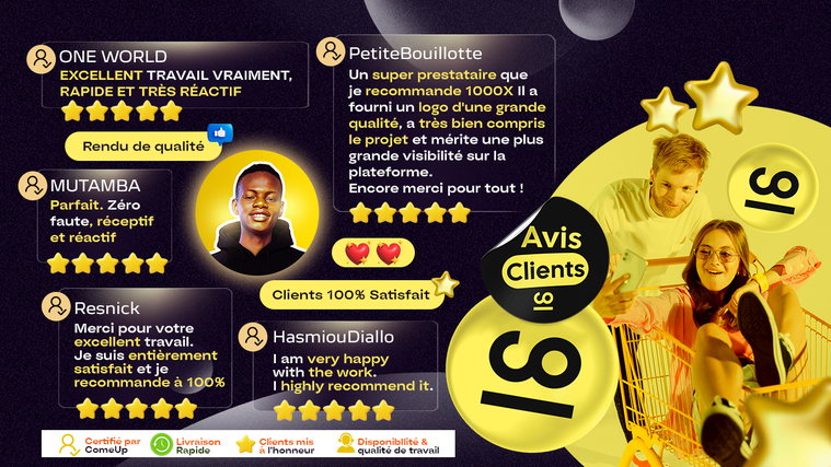 Hello 😀 bienvenue sur mon profil ! Je suis Shek, un designer graphique professionnel passionné, créatif et diplômé, avec plus de trois années d'expérience. Je suis spécialisé dans la création de logos et d'identités visuelles, ainsi que dans la conception de designs pour les réseaux sociaux (bannières, miniatures et flyers) et pour l'impression. J'ai travaillé avec des agences de communication et des entreprises en début de carrière et acquis des expériences relatif au design graphique et la manière dont elle permet la communication de l’information , mais je suis maintenant disponible en tant que freelance pour offrir mes services professionnels. Je suis un créateur joyeux et passionné qui travaille avec un processus créatif rigoureux pour concevoir des solutions créatives pour résoudre efficacement les problèmes de mes clients. Mon écoute attentive de vos besoins me permet de travailler efficacement pour vous offrir des designs uniques et adaptés à vos exigences. Si vous cherchez des solutions créatives pour vos projets, n'hésitez pas à me contacter. Merci de votre visite sur mon profil. Je suis impatient de travailler avec vous et de vous offrir un service professionnel et fiable pour répondre à tous vos besoins en design graphique !