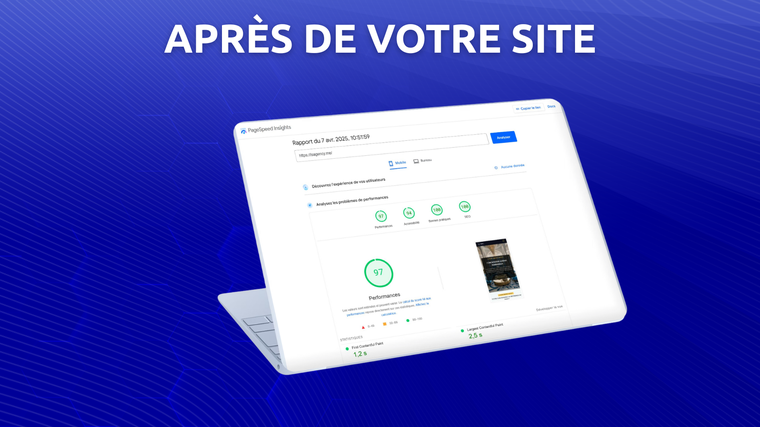 **Optimisation mobile ciblée** : Accélération de la vitesse selon **Google Speed Insight** pour une expérience utilisateur fluide, en mettant l'accent sur les appareils mobiles lorsque la vitesse sur PC dépasse 90.