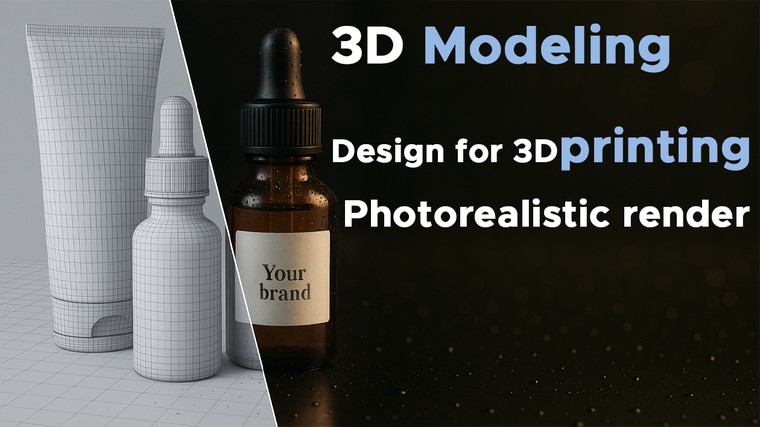 I’ll design a pack containing up to five different products (bottles, flasks, boxes) presented in a scene with the final render. Delivered in .stl, .step, .fbx, or .obj format or according to your needs, with high-quality renders.