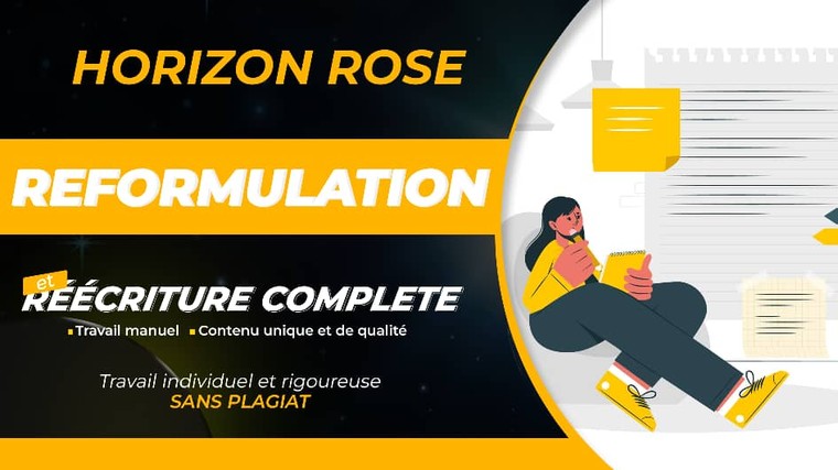 Pour résumer, chez Horizon Rose Rédaction, nous sommes déterminés à vous offrir un service de réécriture et de reformulation de texte de la plus haute qualité. Nous résolvons les problèmes liés à la grammaire, à l'orthographe, à la structure et à l'optimisation du contenu, tout en conservant l'essence et l'intention de votre message.