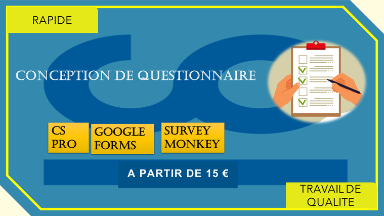 17,58 $US : Conception d’un questionnaire simple avec deux sections et un maximum de 10 questions, livré en 24h.