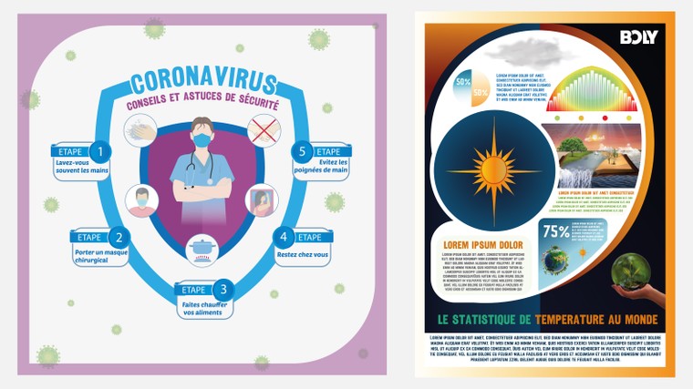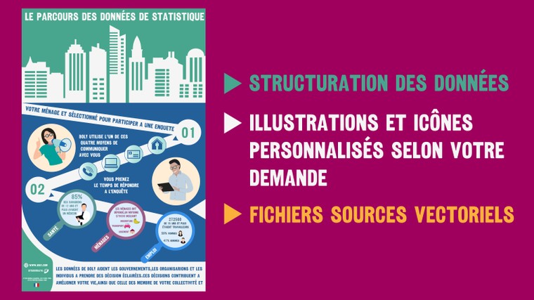 Avec notre service d'infographie design, vous bénéficiez d'une approche personnalisée qui met en valeur votre message clé et engage votre audience. Notre équipe maîtrise les dernières tendances en matière de design et utilise des outils de pointe pour créer des infographies modernes, esthétiques et engageantes