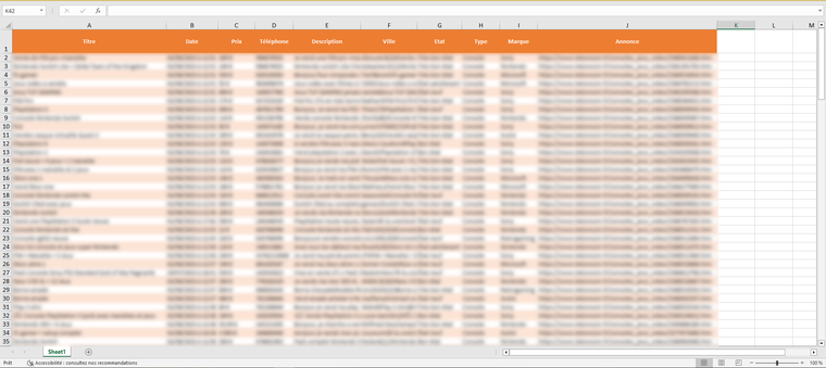Je réaliserai pour vous un fichier Excel composé de 200 annonces qualifiées et collectées spécifiquement pour votre prospection.