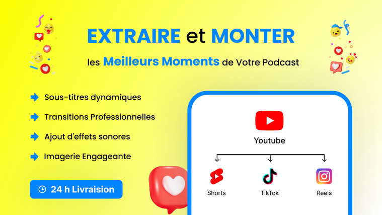 Je suis spécialisé dans la transformation de votre contenu étendu, y compris (épisodes de podcast, interviews, vidéos éducatives, vidéos de commentaire, avis de produits et discours de motivation) en clips concis conçus sur mesure pour des plateformes telles que TikTok, YouTube Shorts et Instagram Reels. En le faisant, mon objectif est de renforcer la visibilité de votre marque et d'élargir votre public, vous permettant ainsi de vous concentrer sur l'excellence de vos activités principales.