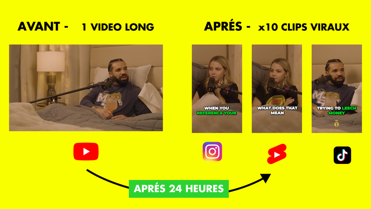 Vous recevrez 10 clips viraux sous forme de vidéos mp4 en format vertical 1080 x 1920 (9:16) + des sous-titres captivants, que vous pourrez publier sur toutes vos chaînes + vous obtiendrez tout cela en seulement 24h