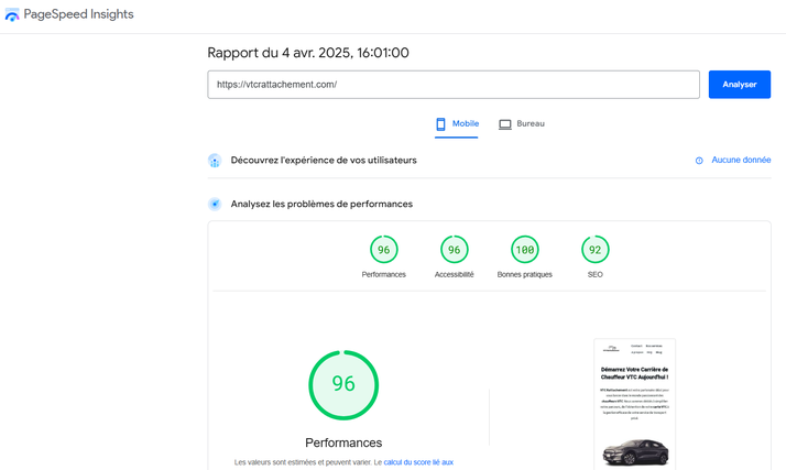 ** Puis-je obtenir un score de 100/100 sur PageSpeed Insights ?** Un score parfait de 100/100 est techniquement difficile à atteindre à cause des contraintes WordPress et des plugins. Cependant, nous visons toujours **90+** et garantissons une amélioration significative de vos performances actuelles.