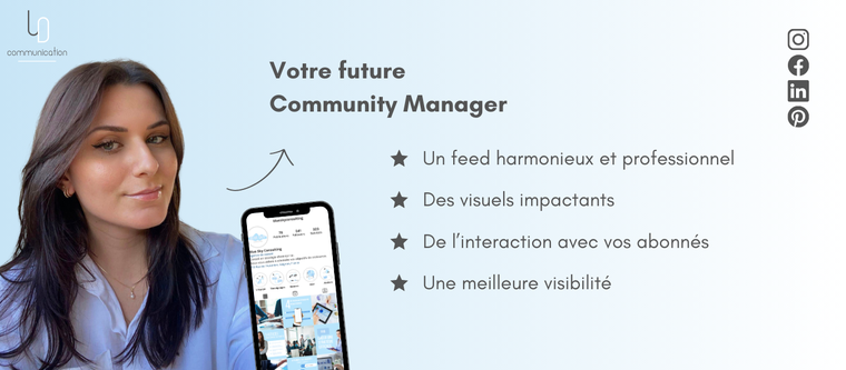 Je propose la gestion de vos réseaux sociaux (Instagram, Facebook, LinkedIn et Pinterest) à distance, création de visuels, création de contenu (photos, vidéos, textes, design)...