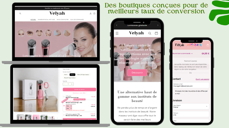 OBTENEZ UNE BOUTIQUE SHOPIFY UNIQUE, PROFESSIONNELLE ET OPTIMISÉE AVEC DES FONCTIONNALITÉS AVANCÉES :