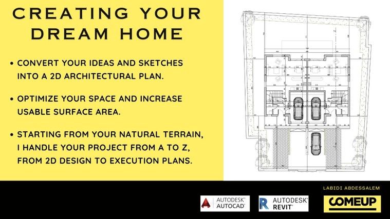 Proposé par abdessalemlabidi •"Votre Architecte, Toujours à l’Écoute !" 😊❤️ Ventes au total 264 Disponible sur ComeUp Direct