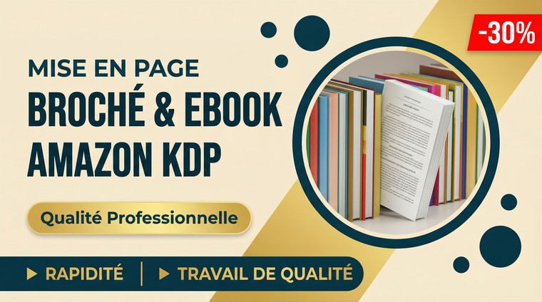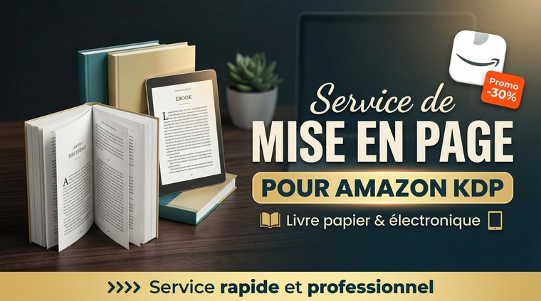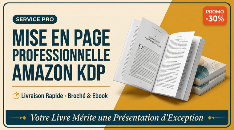 Donnez à votre livre la mise en page professionnelle qu'il mérite. Commandez maintenant et publiez sur Amazon KDP en toute sérénité.