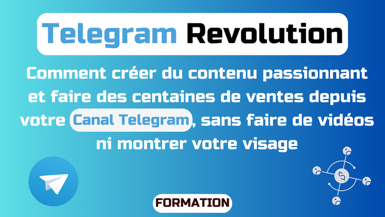 La formation Telegram Revolution : Comment créer du contenu passionnant et faire des centaines de ventes depuis votre canal Telegram, sans faire de vidéos ni montrer votre visage.