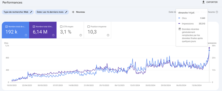 Vous pouvez voir sur les screens l’évolution mois après mois de ce business en termes de référencement naturel (136k visiteurs sur le blog + 193,3k vues sur la chaîne YouTube en 16 mois).