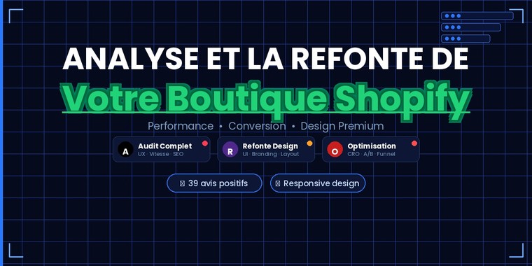 Transformez votre boutique Shopify en machine à conversions : optimisée, structurée et prête à performer.